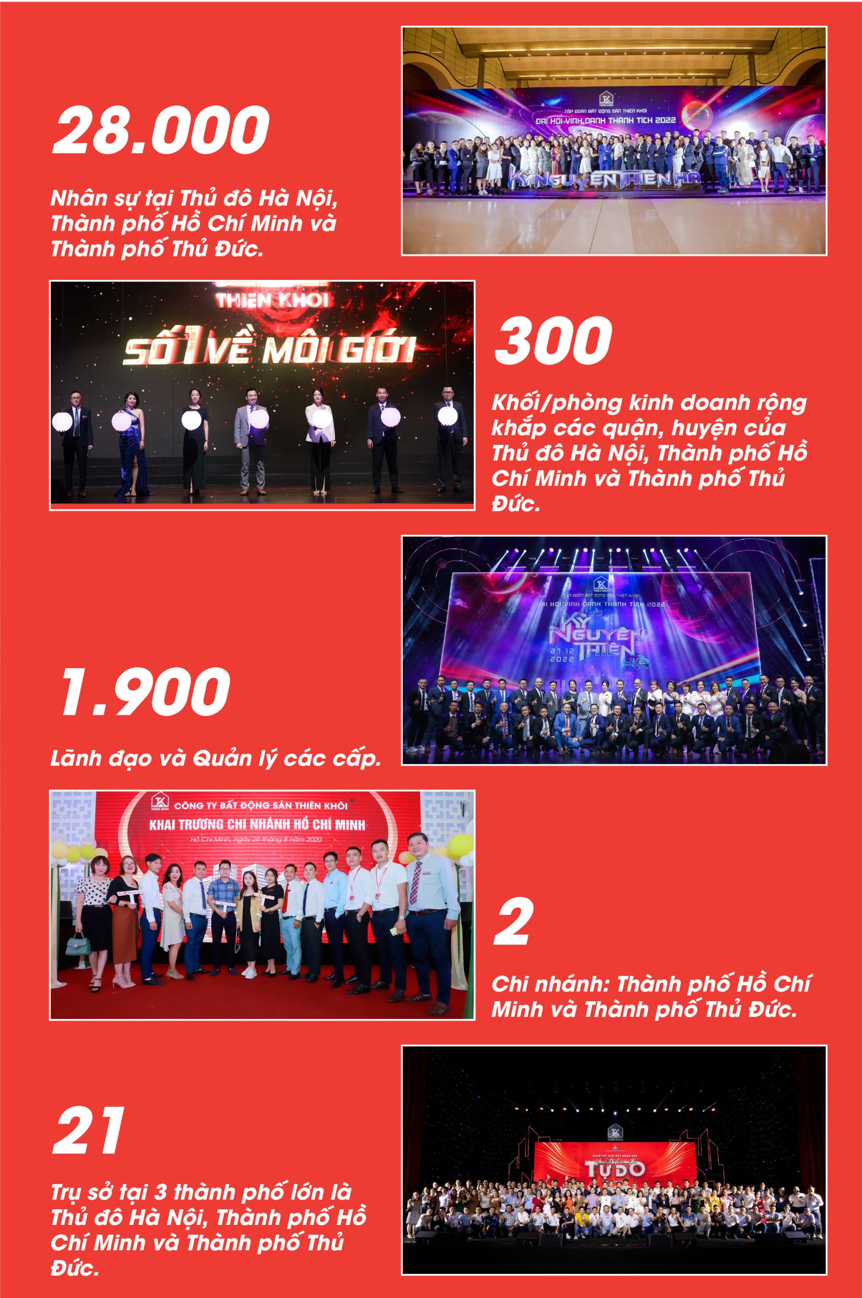Bất động sản Thiên Khôi với 20 trụ sở tại các vị trí đắc địa ở Hà Nội, Thành phố Hồ Chí Minh, kho hàng 50.000 Bất động sản sẵn sàng giao dịch..